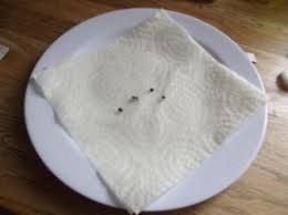 water is in the paper towels. Place your seeds onto the paper towels, leaving a
